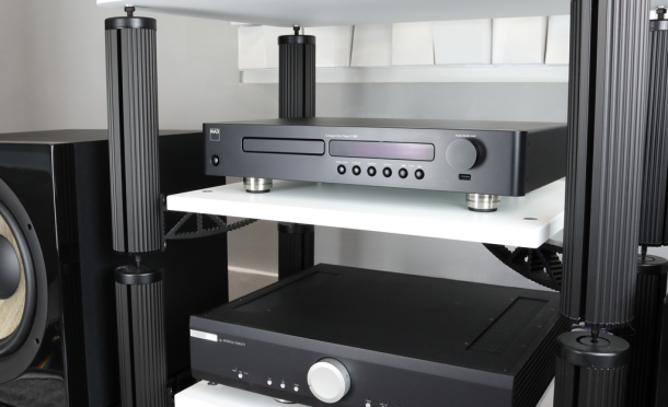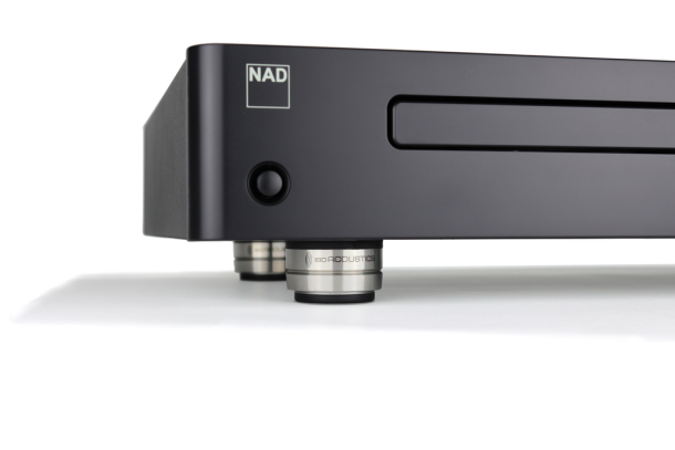 Bekroonde isolatievoetjes voor audioapparatuur met hoge geluidskwaliteit.